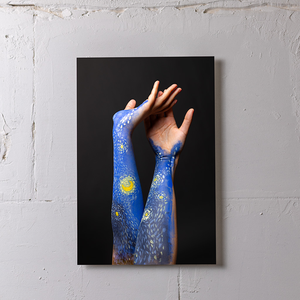 Fine-art print op aluminium met ophangprofiel.
